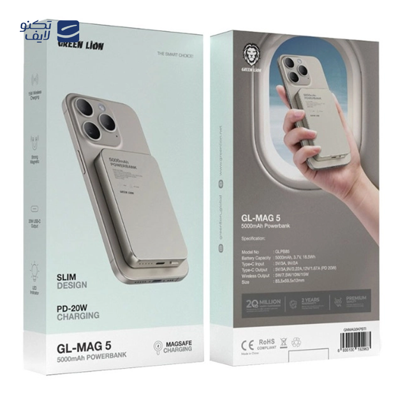 پاوربانک گرین لاین مدل GL-MAG 5 ظرفیت 5000 میلی آمپر ساعت رنگ بژ