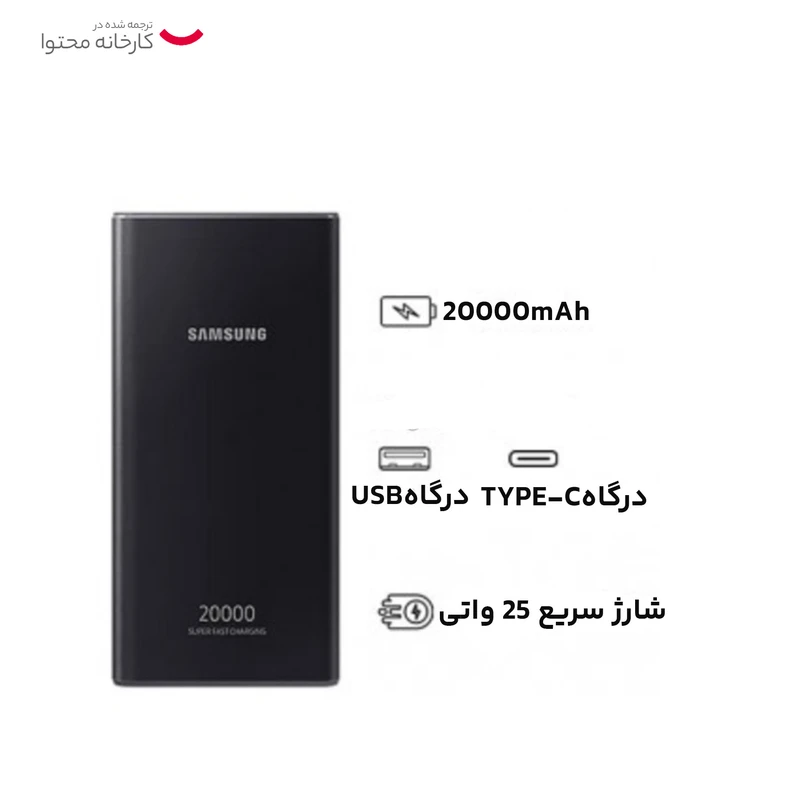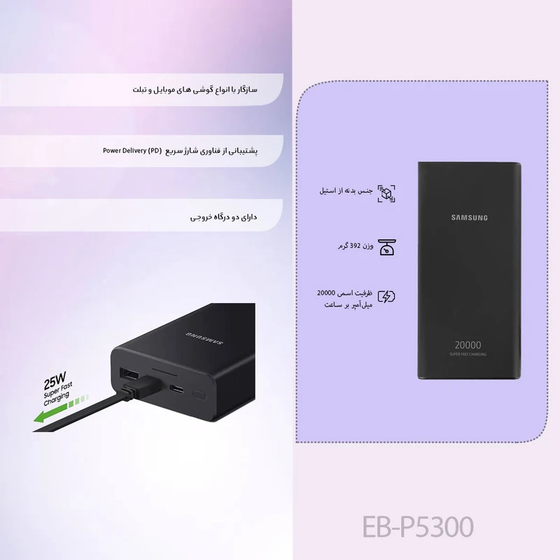 پاوربانک 25 وات سامسونگ مدل EB-P5300 ظرفیت 20000 میلی آمپر ساعت رنگ مشکی